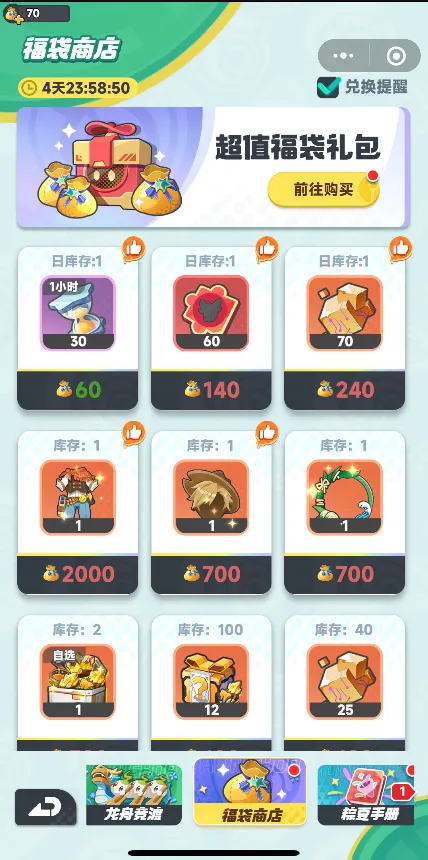 端午佳节,福袋商店限时开启,训练师们可按需挑选心仪好礼~