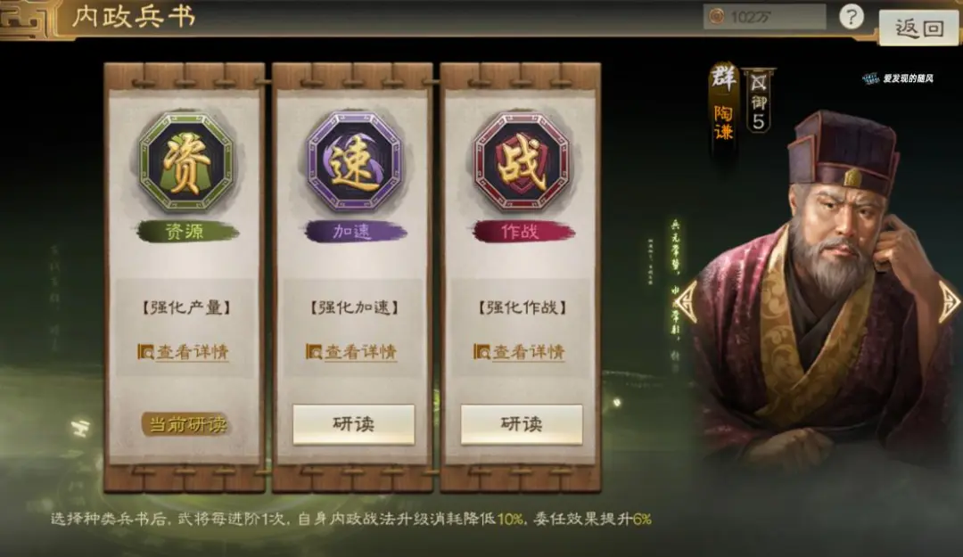 6、锁好内政卡,提前开内政兵书