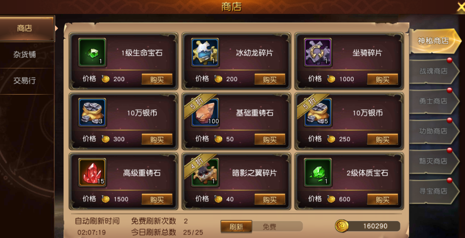 银币:银币作为游戏内功能消耗性道具,银币的获取途径也几乎涵盖了游戏内的各大玩法。主线关卡、世界塔、哥布林副本、竞技场、团队副本、遗迹副本,都能获得银币。在杂货铺除此之外,在每日的在线活动,签到以及活跃度奖励中也能获取少量银币。