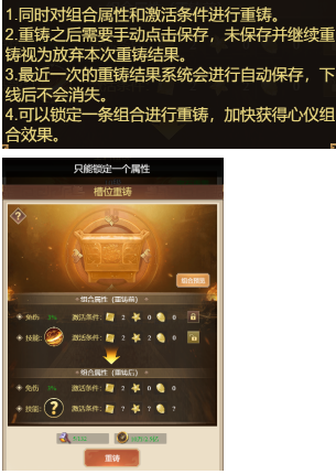 3. 组合可以重铸,重铸可以获取不同效果和激活条件,重铸的技能与槽位需求类型均为随机。