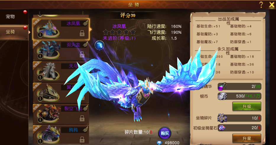 坐骑:每只坐骑都会为玩家带来生命、物防、魔防、物攻、攻、防御穿透的属性提升,坐骑品质越高,提升越大。玩家可通过坐骑的升级以及升星来提升坐骑的属性。